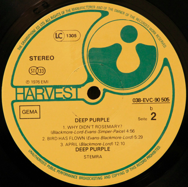 Very similar to German / GEMA version Deep Purple - Deep Purple