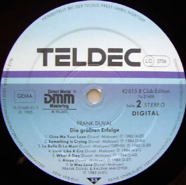 | B1 | Frank Duval– | Give Me Your Love | 4:25 |