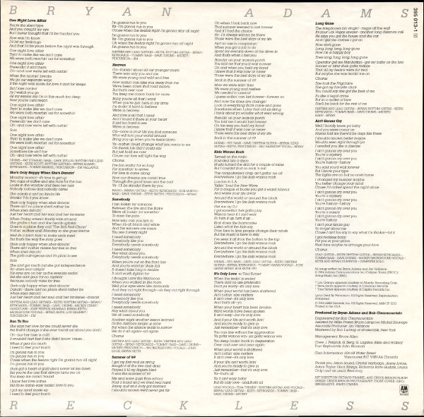 Reissue of Reckless, released after A&M Records changed their European distributor from CBS Records to PolyGram in 1985.