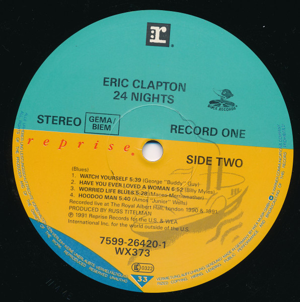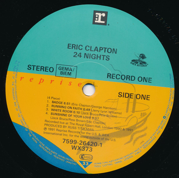 - Warner logo in rim text on labels and so different from Eric Clapton - 24 Nights