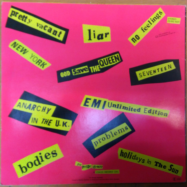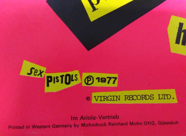 Glen Matlock mis-spelt as "Maflock" on labels. Anarchy In The UK mis-spelt as "UX" on label.