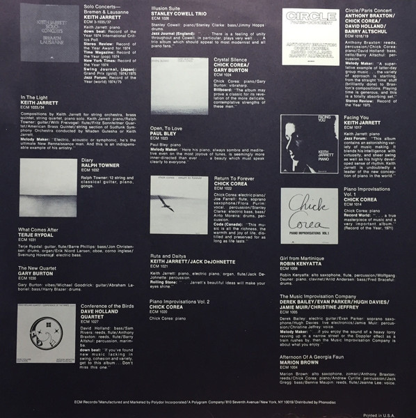 Some releases had TRIO/ECM catalogue/profile insert.