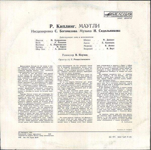 - Voice Actor [Маугли] – М. Куприянова*