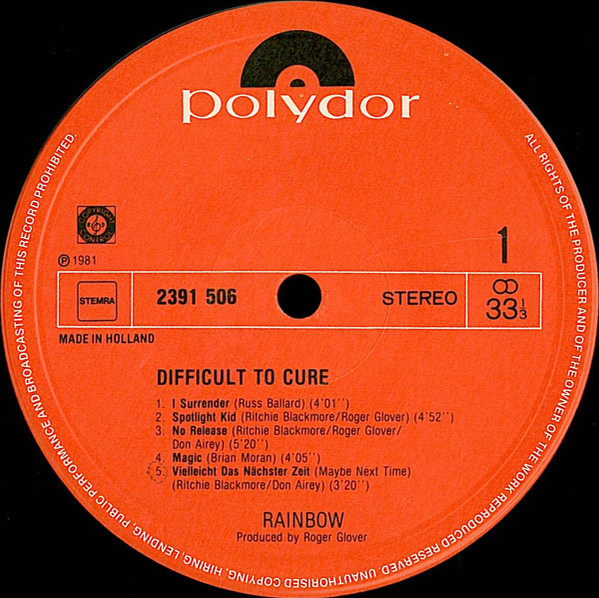© 1980 Thames Talent Pub. Ltd. except "I Surrender" © 1980 April Music, Inc. & Russell Ballard Ltd. and "Magic" © 1981 Becket Music Pub. Co. Ltd.