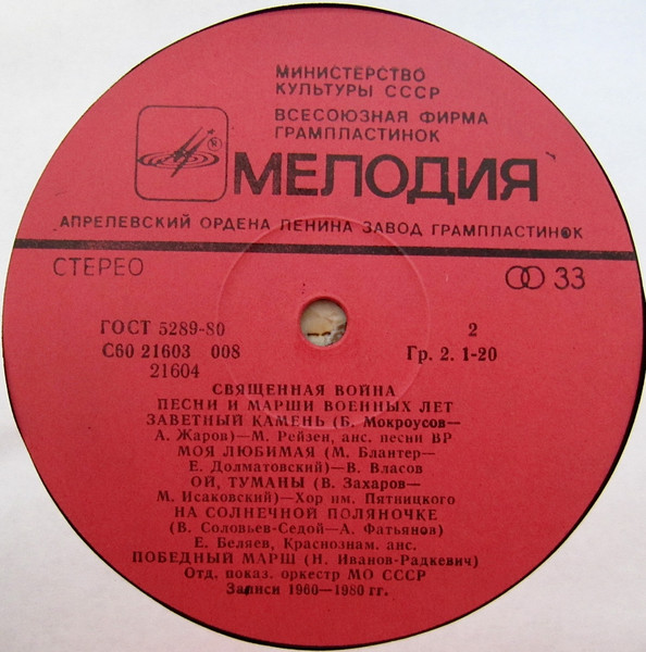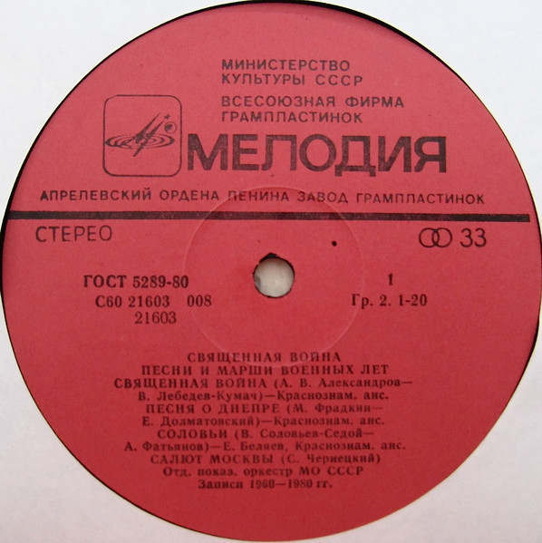 | B5 | Отдельный Показательный Оркестр Министерства Обороны СССР*– | Победный Марш | 3:45 |