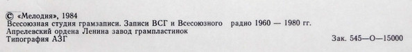 Всесоюзная Студия Грамзаписи. Записи ВСГ и Всесоюзного радио 1960 - 1980 гг.