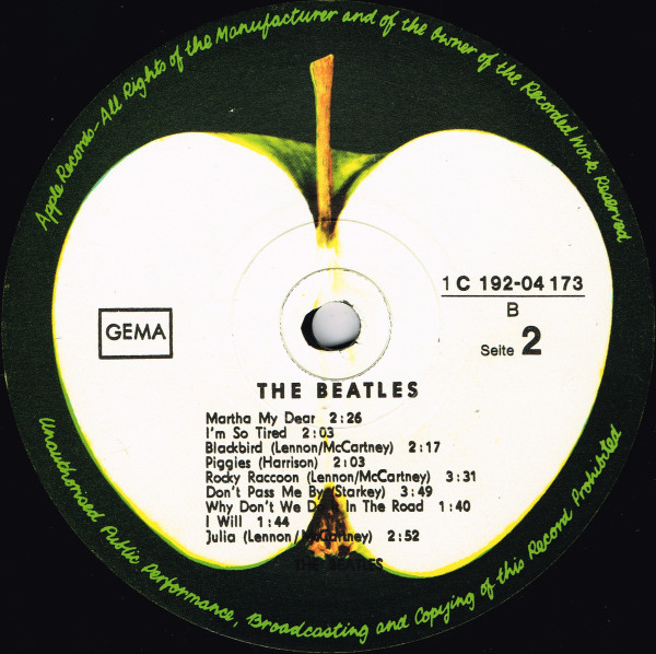 - The Beatles has visible matrix on all sides and a 6-digit number on cover