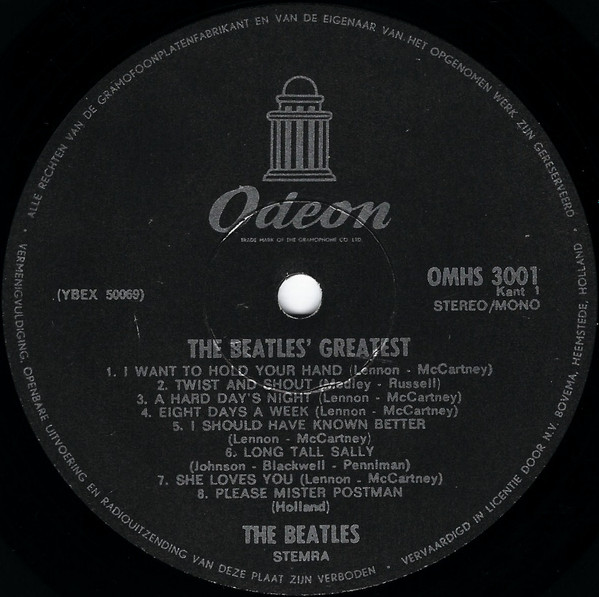 Mid 70s pressing, STEMRA version (bottom of label under "The Beatles")