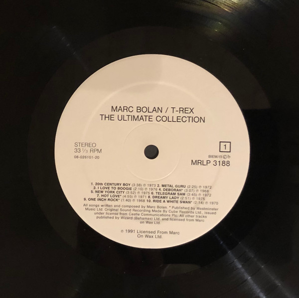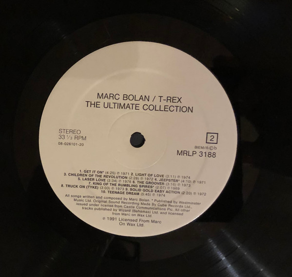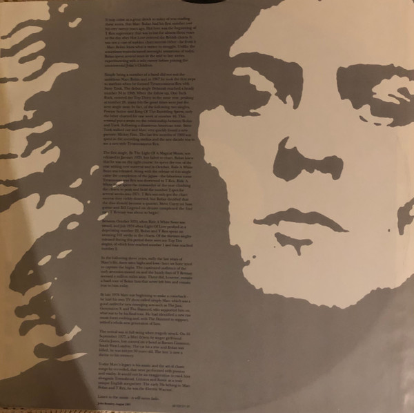 Includes an inner sleeve with a photo of Marc Bolan on one side and some words from John Bramley on the other.