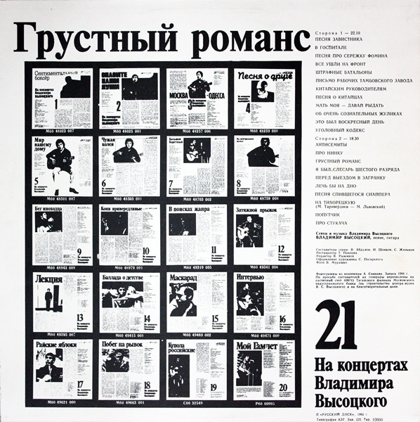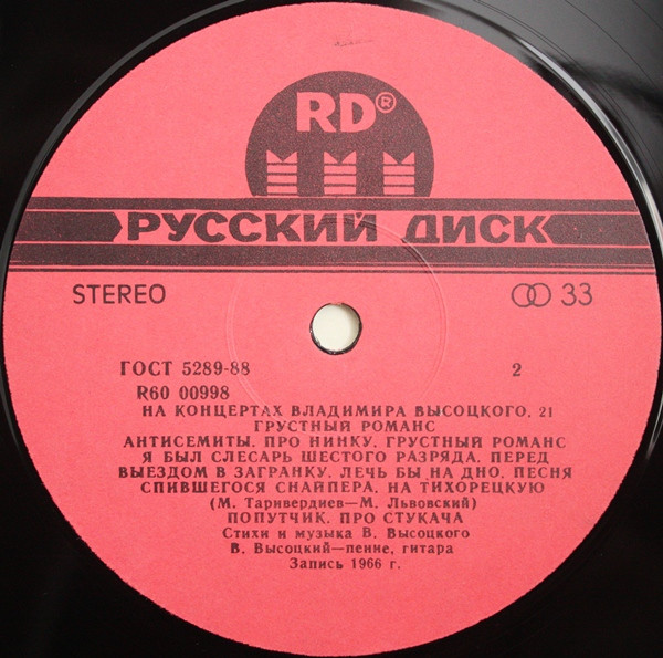 - Music By, Lyrics By – В. Высоцкий* (tracks: A1 to B7, B9, B10)