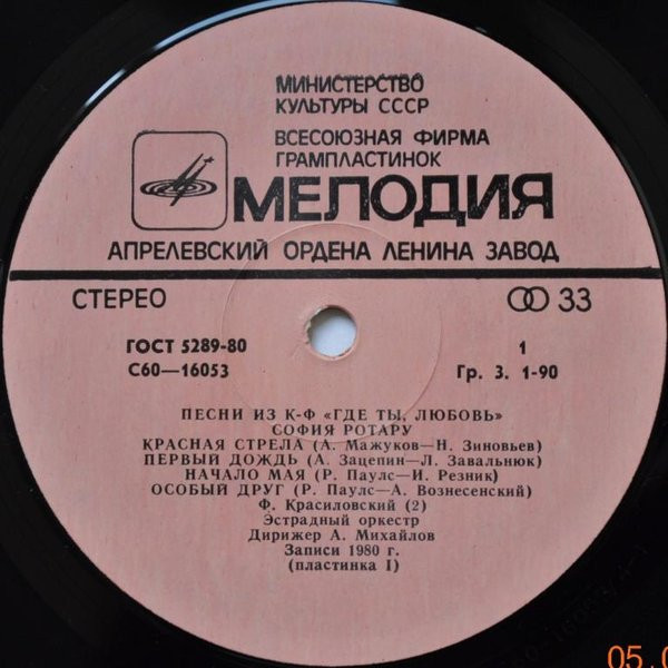 - Record Company – Всесоюзная Студия Грамзаписи