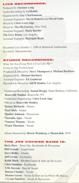 Track A1 to D2 recorded live October 5, 1989 at Memorial Auditorium in Lowell, Massachusetts