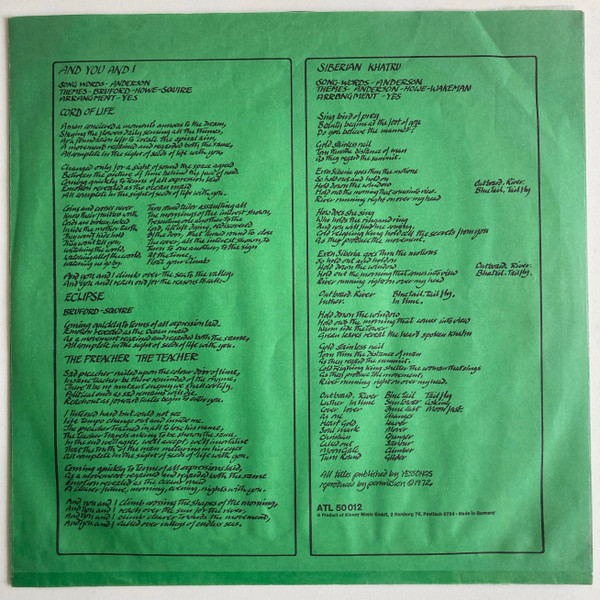- Producer – Eddy Offord, Yes