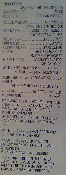 - Written-By, Producer, Vocals, Piano, Synthesizer – Freddie Mercury