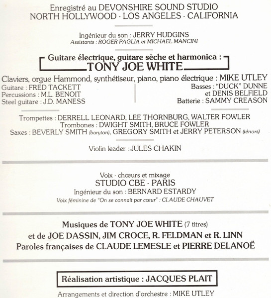 - Electric Guitar, Acoustic Guitar, Harmonica – Tony Joe White