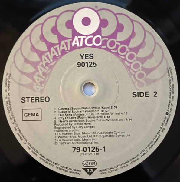 - Producer – Trevor Horn, Yes (tracks: A2)
