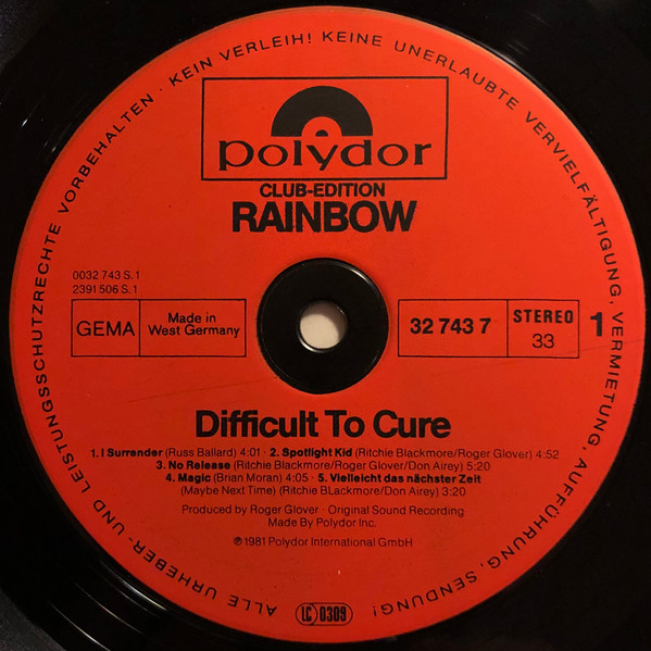 "Difficult To Cure (Beethoven's Ninth)" (on back cover)