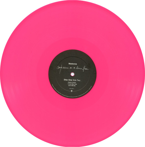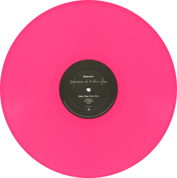 This original European pink vinyl edition has a small Warner logo as well as a LC on the back cover besides the barcode. The 2019 EU repress with the same catalog number, Confessions On A Dance Floor, has a blobby and bigger, new warner logo besides the barcode, and there is no LC beside it.