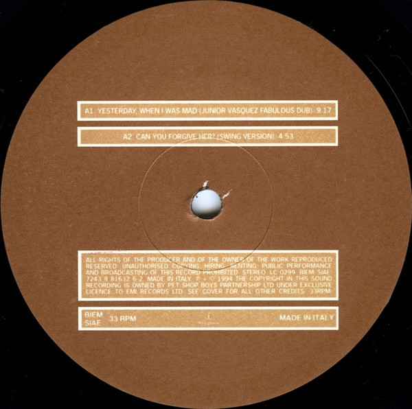 | A1 | Yesterday, When I Was Mad (Junior Vasquez Fabulous Dub) | 9:17 | |