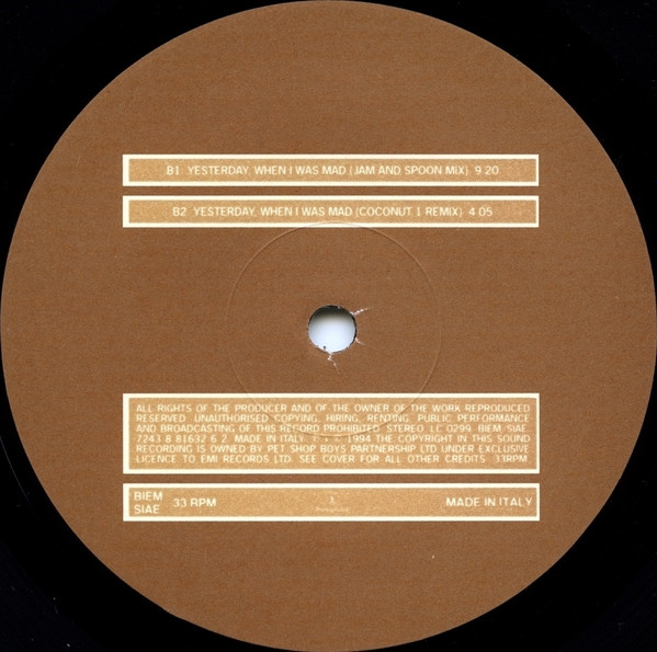 | B2 | Yesterday, When I Was Mad (Coconut 1 Mix) | 4:05 |