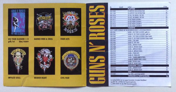 Some copies distributed in Germany included 4-page small merch insert with GnR logo on front.