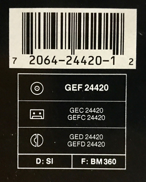 Sticker on front of cover reads: "This album contains language which some listeners may find objectionable. They can F?!✶ OFF and buy something from the New Age section. GEF/GEFD 24415/24420"