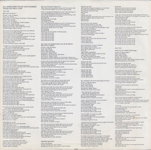 - Keyboards – Jim Steinman (tracks: A1, A2, B2), Roy Bittan (tracks: A1, A2, B2)
