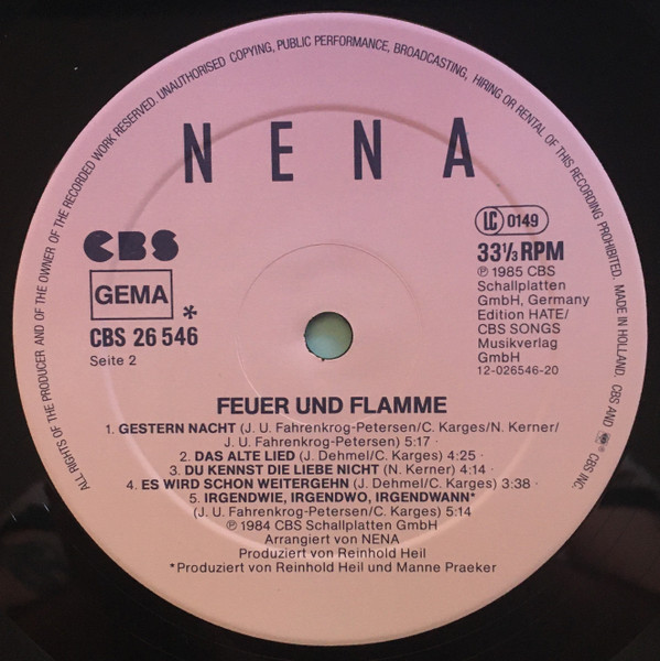 - Phonographic Copyright ℗ – CBS Schallplatten GmbH