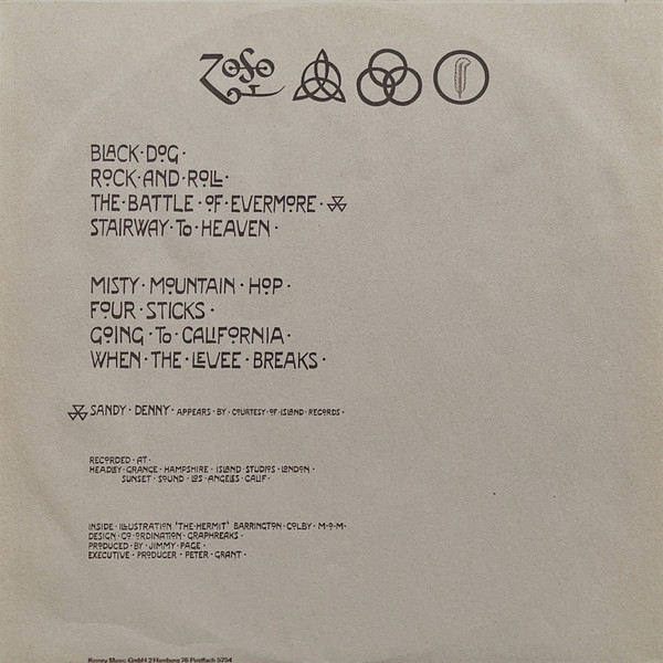 Text on bottom of inner cover: Kinney Music GmbH 2 Hamburg 76 Postfach 5754