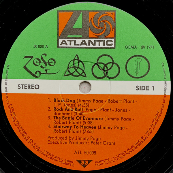 Text first line on label rim text: A ATLANTIC RECORDING CORP. U.S.A. ∙ KINNEY MUSIC GMBH., HAMBURG ∙ LICENSEE TRADE MARK ® ∙ MADE IN GERMANY