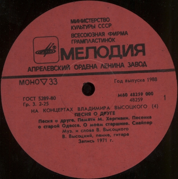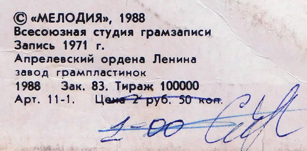 - Recorded By – Всесоюзная Студия Грамзаписи