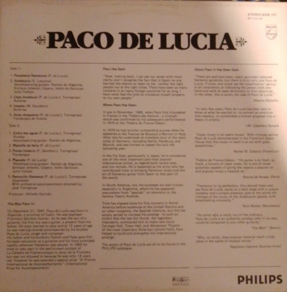 - Written-By – E. Lecuona* (tracks: A2), F. Sánchez* (tracks: B3), José Torregrosa (tracks: A3, A5, B1, B3, B5), Mario Escudero (tracks: A4), Paco De Lucía (tracks: A1, A3, A5, B1, B2, B4, B5)