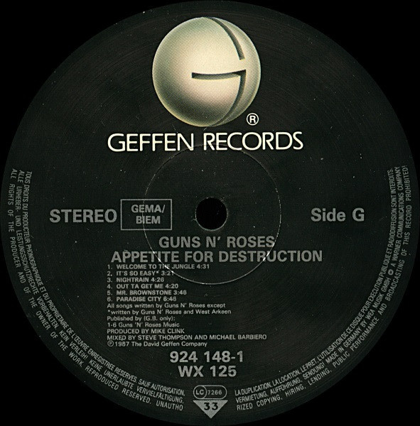 Geffen Records 924 148-1, Geffen Records WX 125, Uzi Suicide Records 924 148-1, Uzi Suicide Records WX 125