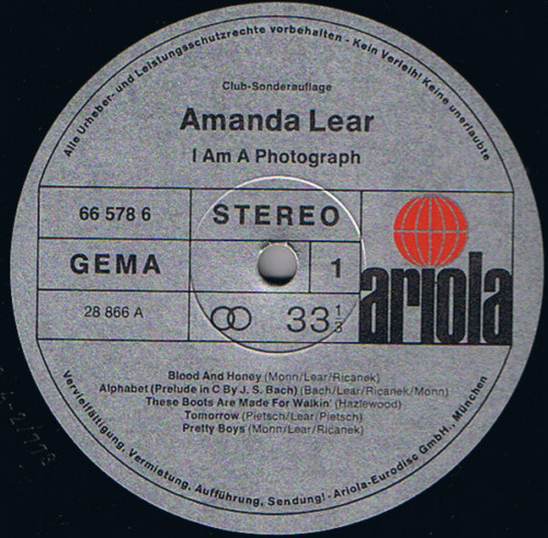 - Written-By – Amanda Lear (tracks: A1, A2, A4 to B5), Anthony Monn (tracks: A1, A2, A5, B1, B3, B4)