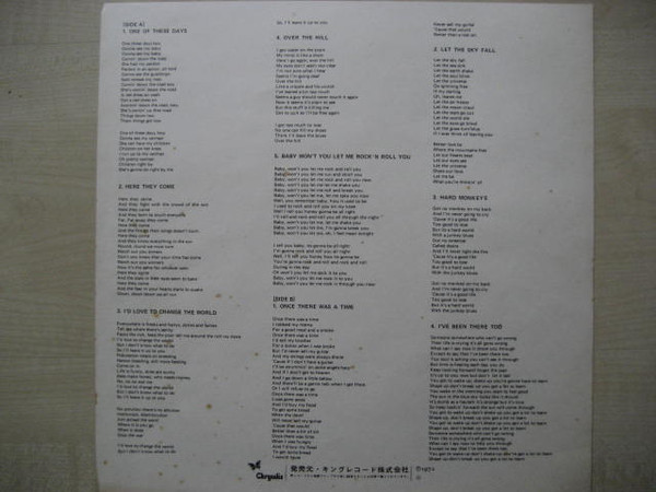 - Written-By – Alvin Lee (tracks: A1 to B4), A. Lee* (tracks: B5), C. Churchill* (tracks: 5), L. Lyons* (tracks: B5), R. Lee* (tracks: B5)