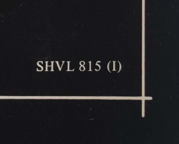 Black cardboard inner sleeve with lyrics on it. Rounded corners, and a 1/16" x 9" thumb cut on the edge that opens. In the lower right corner is the catalog number: SHVL 815 (I)