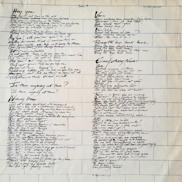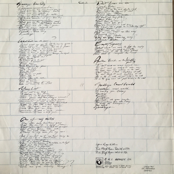 Side 4: © Roger Waters 1979 Pink Floyd Music Publishers Ltd. ℗ 1979