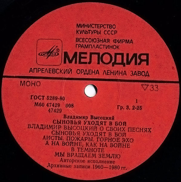 Всесоюзная студия грамзаписи. Архивные записи 1960-х — 1980 гг.