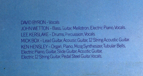 - Organ, Piano, Synthesizer [Moog], Tubular Bells, Electric Piano, Guitar, Slide Guitar, Acoustic Guitar, Electric Guitar [12 String], Pedal Steel Guitar, Vocals – Ken Hensley