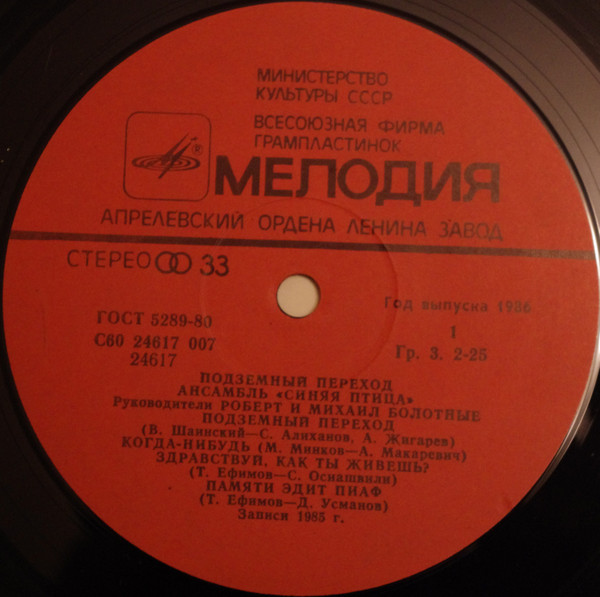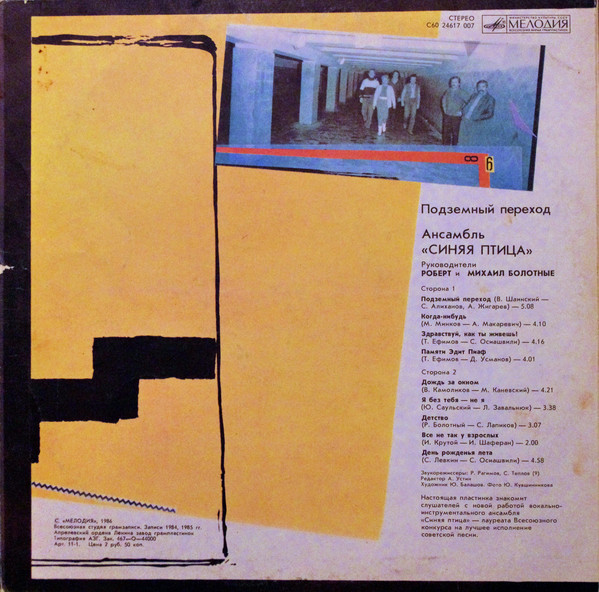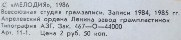 Всесоюзная студия грамзаписи. Записи 1984, 1985 гг.