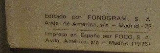 * Cofasa, S.A. is a typo. Really it's Cofa, S.A. (Columbia, Fonogram Asociadas, S.A.)