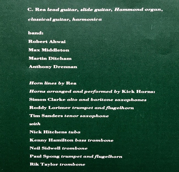 - Lead Guitar, Slide Guitar, Organ [Hammond], Classical Guitar, Harmonica, Vocals – C. Rea*