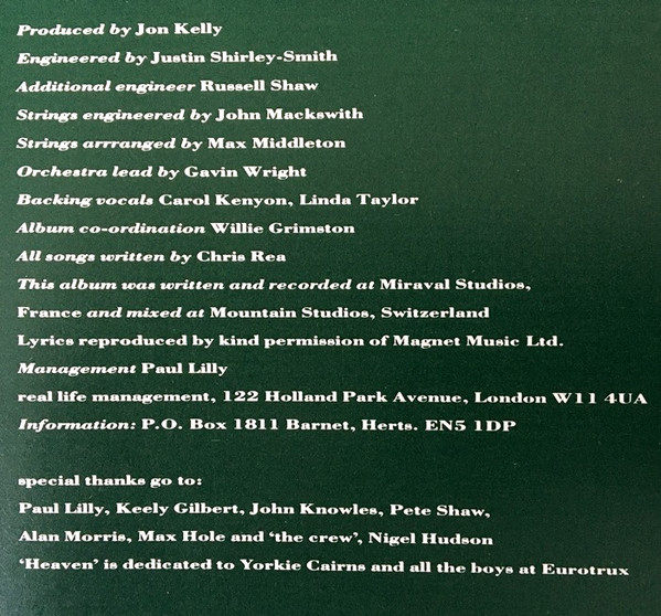 This release is the corresponding UK & Europe release Chris Rea - Auberge,