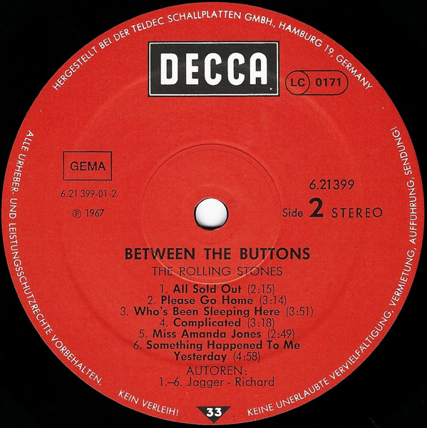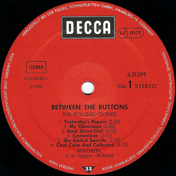 Made in Germany • TELDEC Schallplatten GmbH, Heussweg 25, 2000 Hamburg 19 (Western Germany) ℗ 1967