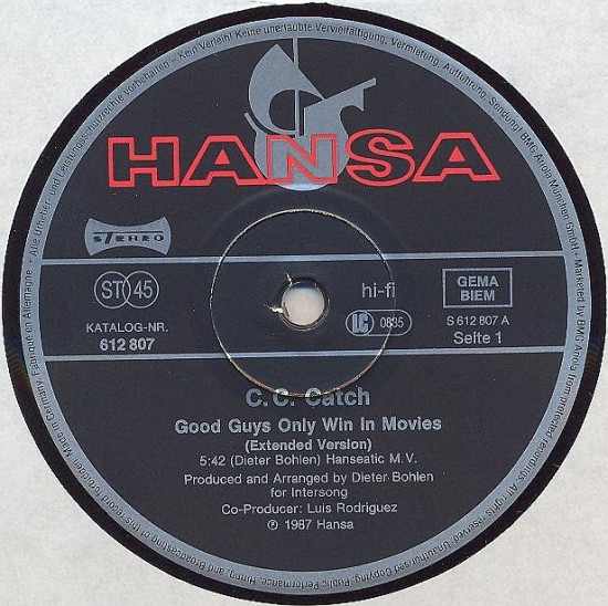 Also available on 5" MAXI-CD 662 807 : C.C. Catch - Good Guys Only Win In Movies.