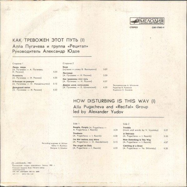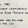 Всесоюзная студия грамзаписи. Запись 1981 г.