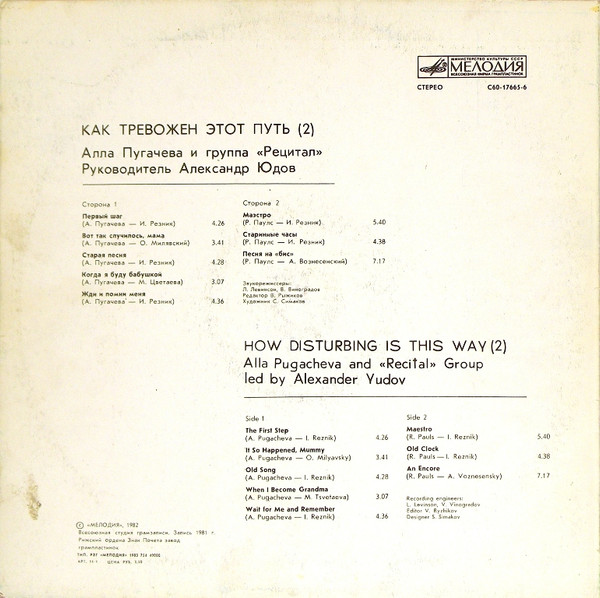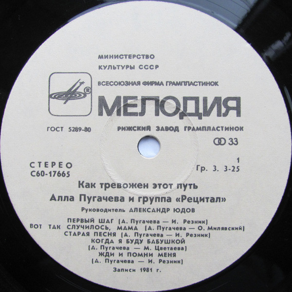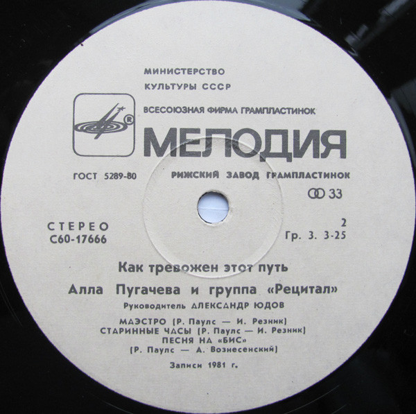 Алла Пугачева = Алла Пугачева И Рецитал = Рецитал - Как Тревожен Этот Путь (2) = How Disturbing Is This Way (2)