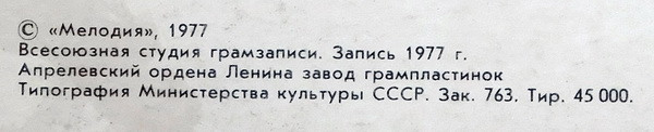 Всесоюзная студия грамзаписи. Запись 1977 г.