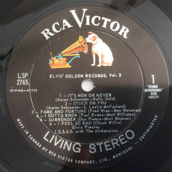 Black label, dog on top, LIVING STEREO on bottom