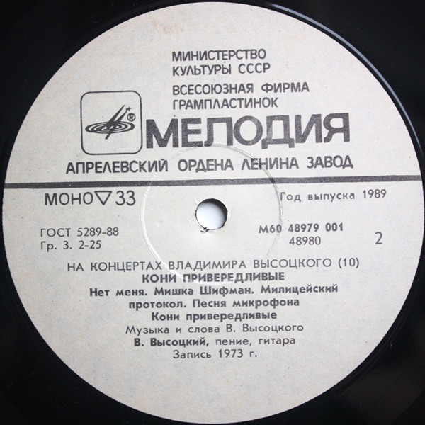 - Производитель грампластинки – Апрелевский Завод Грампластинок